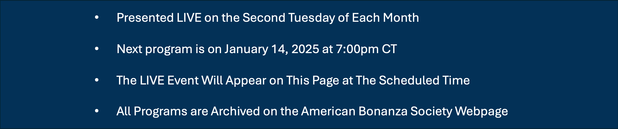Although this American Bonanza Society program is oriented toward pilots of Beech airplanes, the discussion, techniques and procedures described are valuable to the pilot of any airplane.